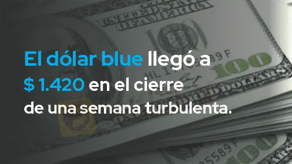 Después de una semana con tensión en el mercado, el dólar blue cerró en $ 1.420, 55 pesos por arriba del precio que tenía hace una semana. Si bien la presión fue bajando a lo largo de la semana, los mercados no dejan atrás la incertidumbre.