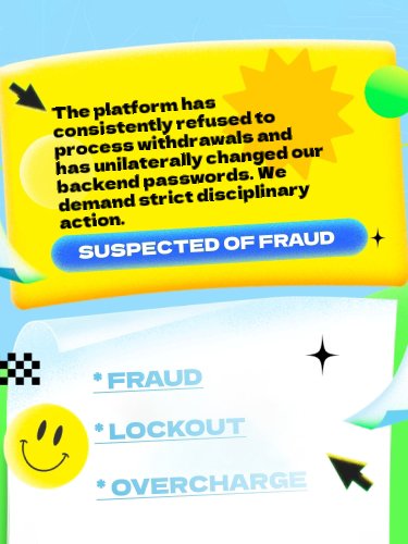 Ang platform ay patuloy na tumangging iproseso ang mga withdrawal at nagbago ng walang pahintulot ang aming mga backend password. Hinihiling namin ang mahigpit na aksyong disiplinaryo.