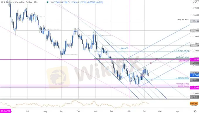 Ang Canadian Dollar ay halos hindi nagbabago laban sa US Dollar sa pagsisimula ng linggo na may USD/CAD na patuloy na gumiling sa ibaba lamang ng paglaban sa maraming buwan na trend. Habang ang isang mas malalim na pag-setback ay maaari pa sa mga kard, ang pokus ay sa isang suporta na mas mababa lamang habang ang mga toro ay tumingin upang patunayan ang Enero breakout. Ito ang na-update na mga target at antas ng hindi wasto na mahalaga sa mga tsart ng presyo ng USD/CAD. Suriin ang aking pinakabagong Diskarte sa Webinar para sa isang malalim na pagkasira ng teknikal na pag-setup ng Loonie na ito at marami pa.