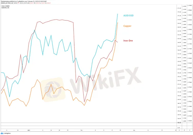 Mga Balita sa Forex sa WikiFX (22 Pebrero 2021) - Pagtataya ng Precio ng AUD/USD: Tumataas na Mga Presyo sa Bakal at Copper sa Bolster AUD/USD.