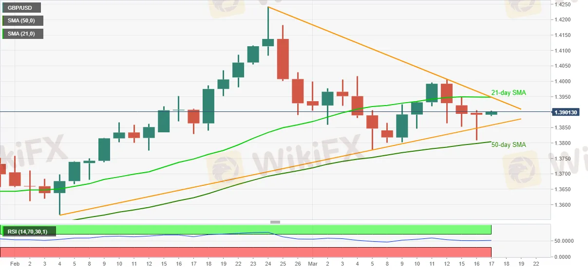 Mga Balita sa Forex sa WikiFX (17 Marso 2021) - Pagsusuri sa Presyo ng GBP/USD : Naglalayon para sa 1.3950 key sagabal pagkatapos ma-snap ang tatlong araw na pagkawala ng guhit.