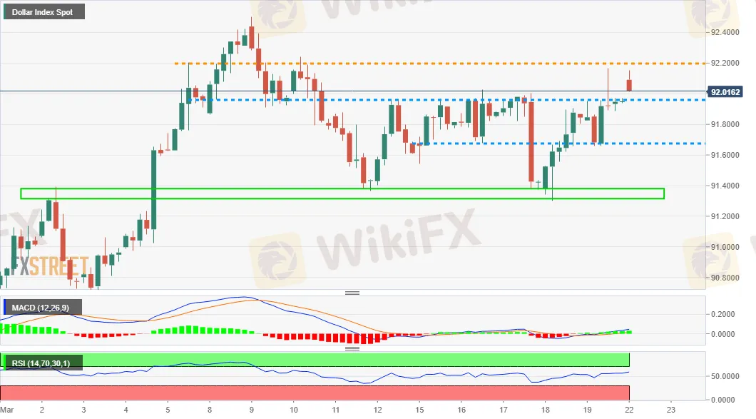 Mga Balita sa Forex sa WikiFX (22 Marso 2021) - Pagsusuri sa Presyo ng US Dollar Index : Naghihintay ang paglipat ng mga DXY bulls na lampas sa swing high ng Biyernes.