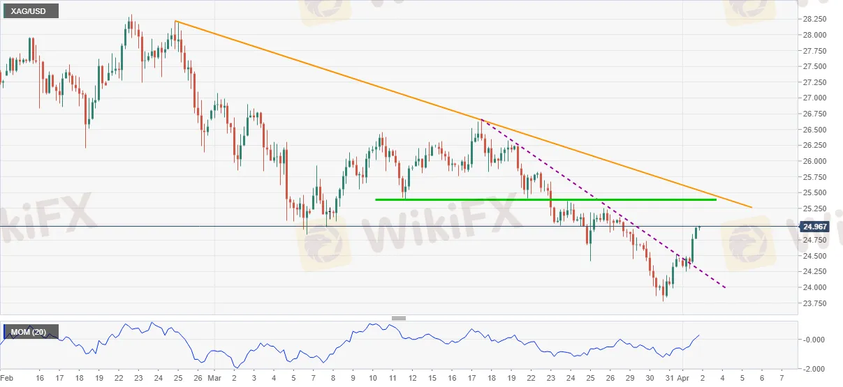 Mga Balita sa Pananalapi sa WikiFX (02 Abril 2021) - Pagsusuri sa Presyo ng Pilak : Ang mga toro ng XAG/USD ay dapat manatiling maingat sa ibaba $ 25.55.