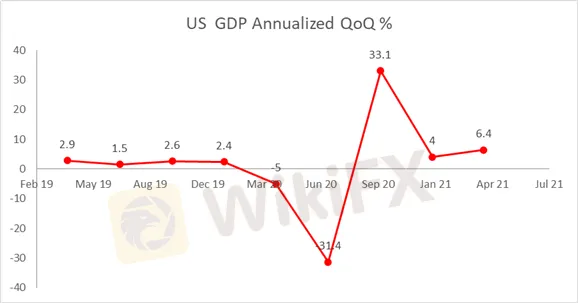 Ang US GDP ay lumago sa 6.4% sa unang quarter ngayong taon, tinalo ang inaasahan sa merkado na 6.1%. Ipinakita ng data na ang demand ay lampas sa supply habang ang pagkonsumo ay masidhing kinuha, hudyat na isinasagawa ang isang malusog na paggaling. Samantala, ang Federal Reserve ay nanatiling dovish-bias sa pulong ng FOMC, na hindi nagpapakita ng pagmamadali upang ayusin ang patakaran sa pera nito sa ngayon. Ang isang matulungin na sentral na bangko ay maaaring magpatuloy na suportahan ang record rally ng stock market.