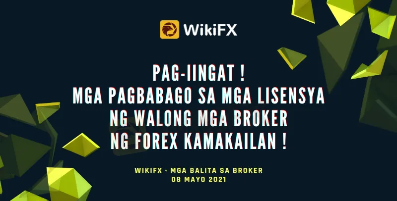 Mga Balita sa Broker ng WikiFX (Ika-9 ng Mayo taong 2021) - Ang mga broker ng Forex na ang mga lisensya ay nagbago kamakailan ay nakalista bilang sumusunod para sa iyong sanggunian. Mangyaring protektahan ang iyong sarili mula sa mga panganib sa pamumuhunan!