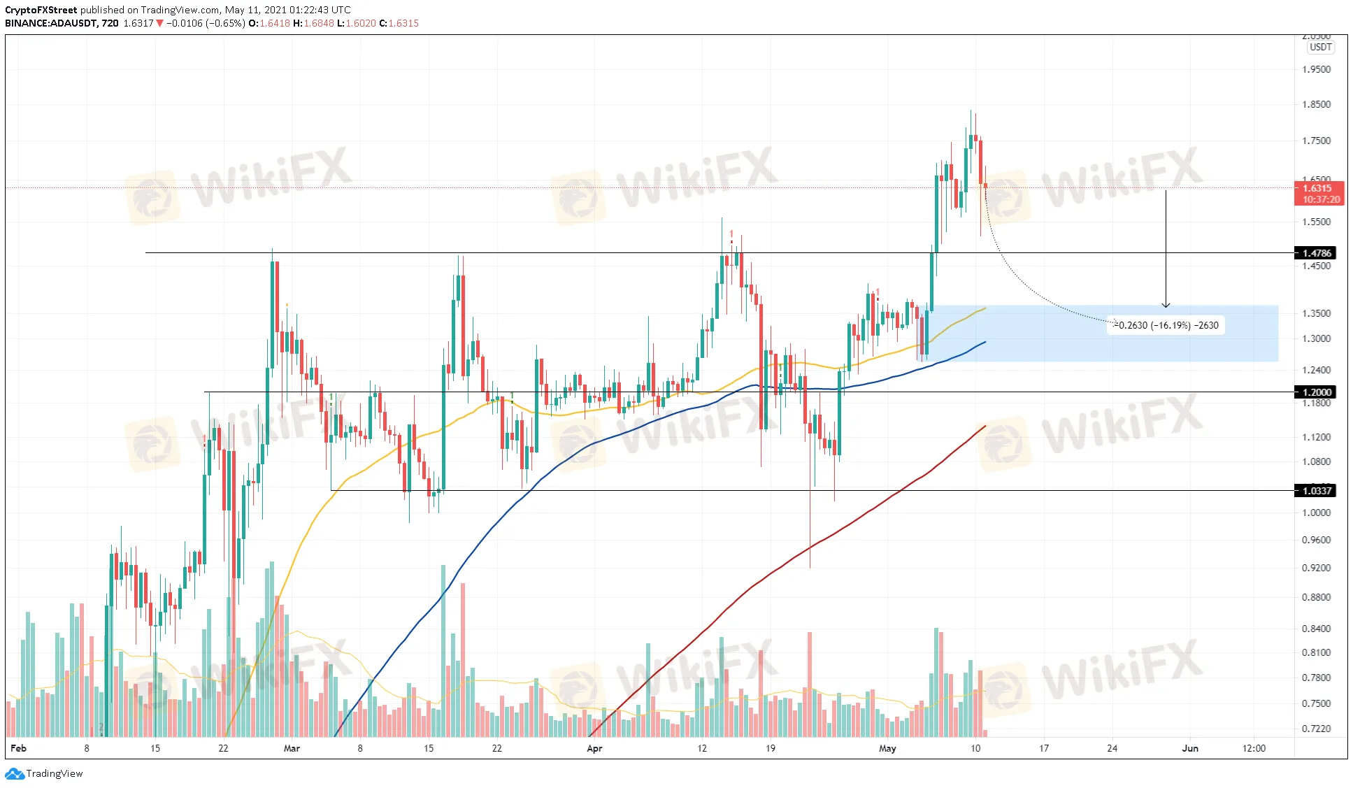 Balita sa Cryptocurrency ng WikiFX (Ika-11 ng Mayo taong 2021) - Prediction sa Presyo ng Cardano : Ang ADA ay nakakakuha upang mabawasan habang naghihintay ang 16% na pagwawasto.