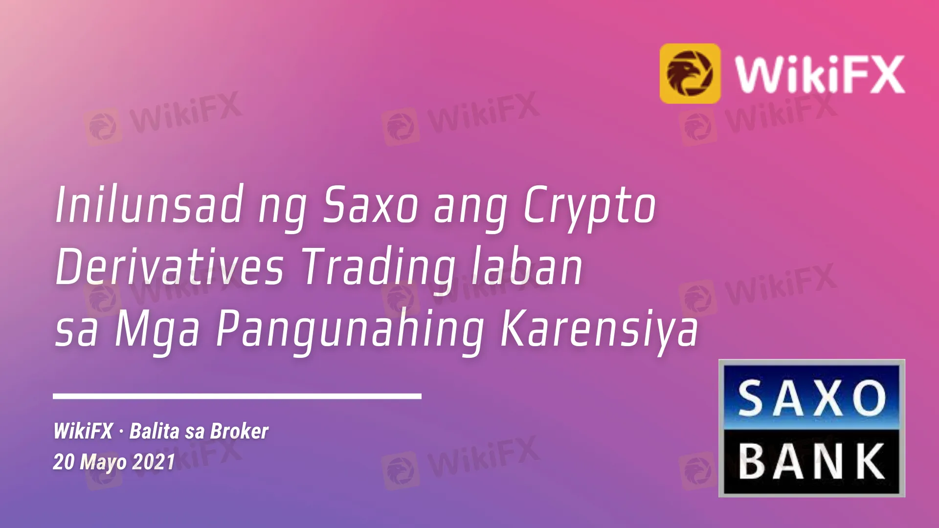 Balita sa Broker ng WikiFX (Ika-20 ng Mayo taong 2021) - Ang retail crypto trading ay unang magagamit sa mga kliyente ng broker sa Australia at Singapore.