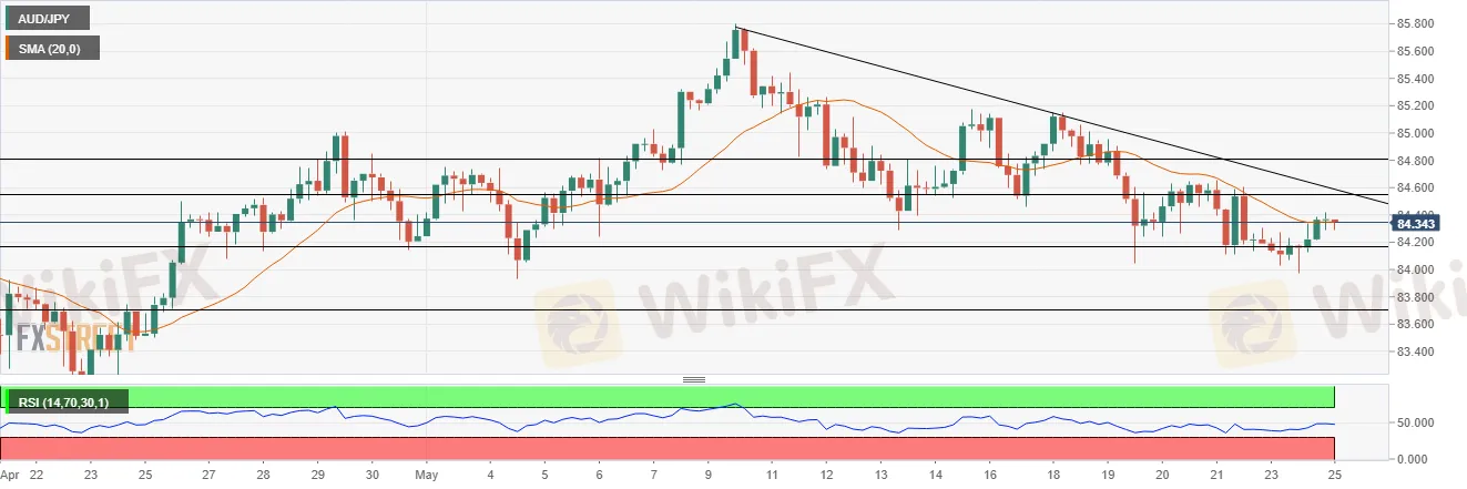Balita sa Forex ng WikiFX (Ika-25 ng Mayo taong 2021) - Pagsusuri sa Presyo ng AUD/JPY : Hinahamon ng mga bear ang 20-oras na SMA malapit sa 84.35.