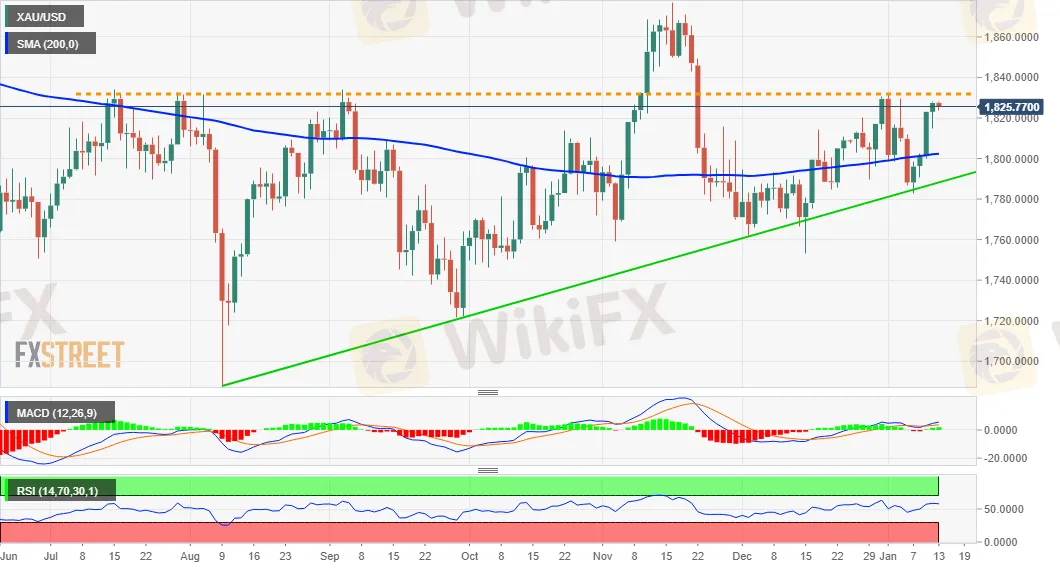 abstrak:Forecast sa Presyo ng Ginto: Ang XAU/USD ay nanatiling matatag malapit sa isang linggong mataas, mas mababa lang sa $1,830-32 na hadlang