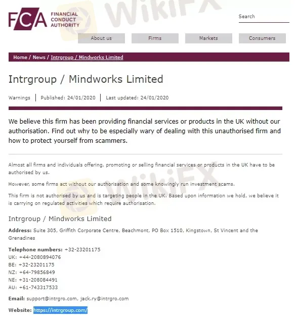 Given the above, it's no surprise that the Financial Conduct Authority in the United Kingdom has banned INTRGROUP as a possible fraudster.
