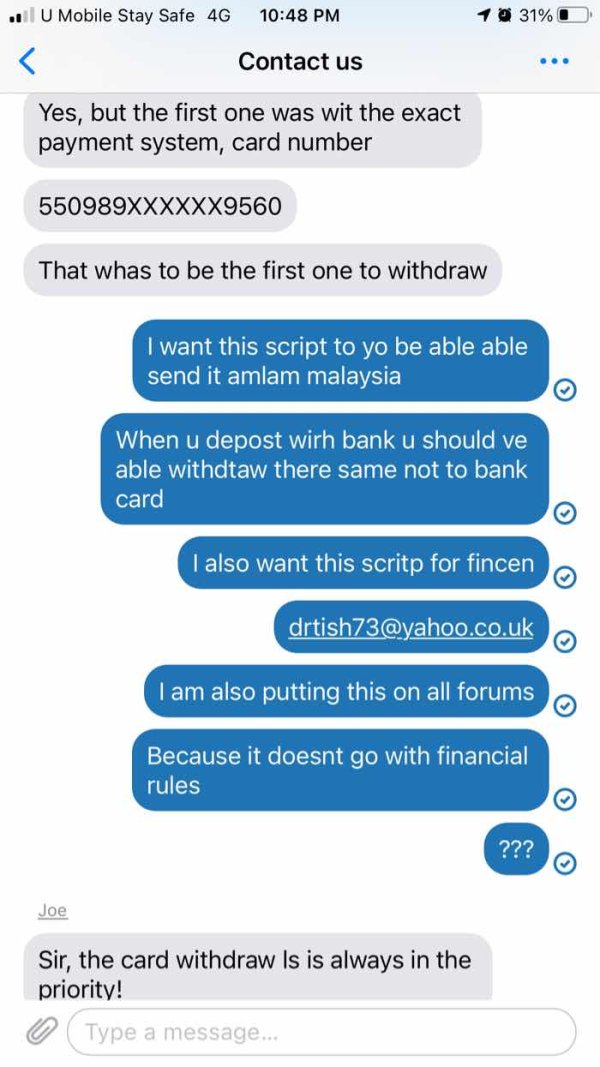 If you deposit via card your screwd