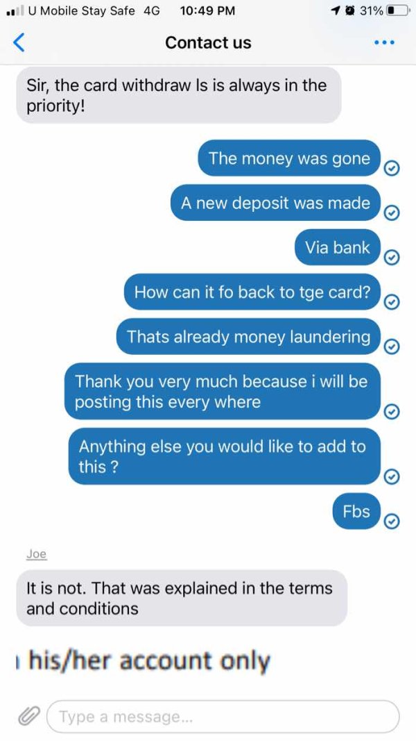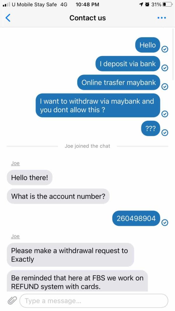Fbs forces you withdraw via exaclty if you have used a card even after a bank deposit