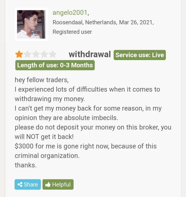 A client has claimed he cannot withdraw his money and he may never get his money back. He warned others to stay away from this broker.