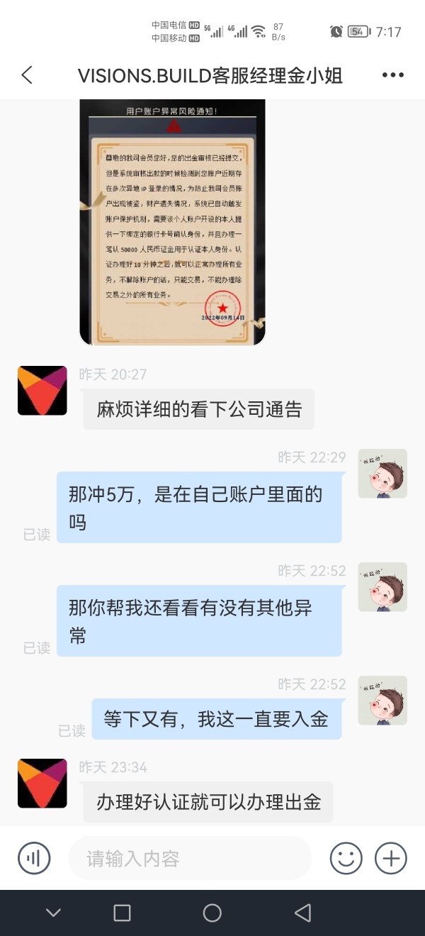 给了保证金然后又是异地登录异常,又要入金5万人民币