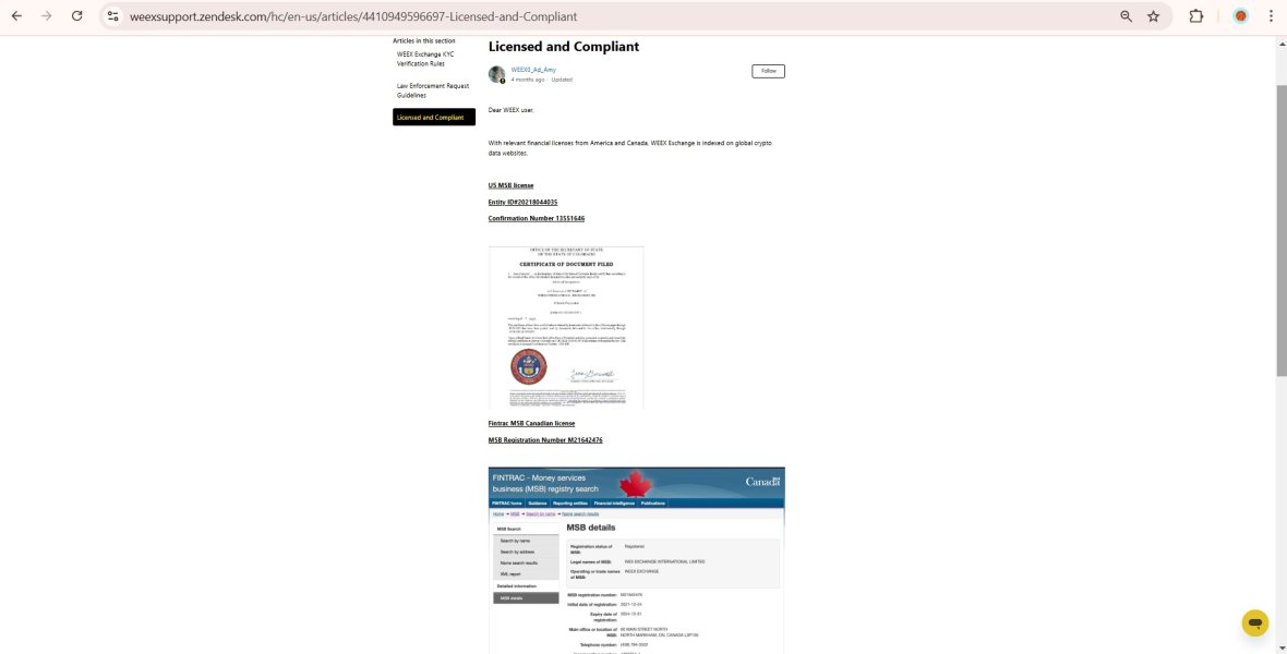 Before joining WEEX, I conducted thorough research to ensure its legitimacy and credibility. I found that this exchange is fully compliant and has acquired key licenses, including the U.S. MSB from FinCEN, the Canadian MSB from FINTRAC, and the SVGFSA license from St. Vincent. I also verified these licenses on the respective regulatory websites, and all were authentic. I highly recommend doing your own research (DYOR) before making judgments or starting your journey as a WEEX user!