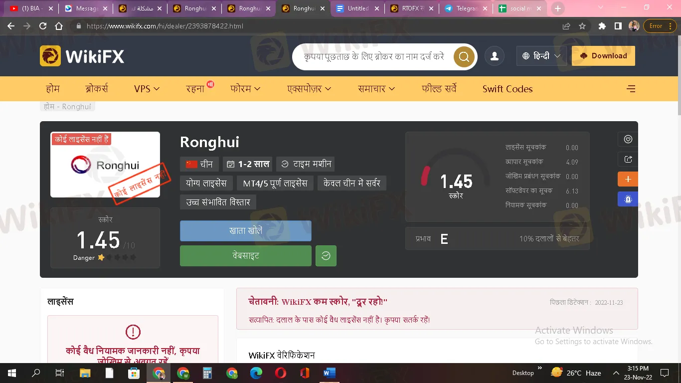 वास्तव में, ऐसी स्थिति से बचने के कई तरीके हैं. विदेशी मुद्रा और अन्य लेनदेन करने से पहले, आप यह देख सकते हैं कि मंच हमारे विदेशी मुद्रा हिन्दी पर विश्वसनीय है या नहीं. एक उदाहरण के रूप में रोंघुई समूह मंच लें. निम्नलिखित परिणाम प्राप्त करने के लिए हिन्दी मुखपृष्ठ पर रोंघुई समूह खोजें