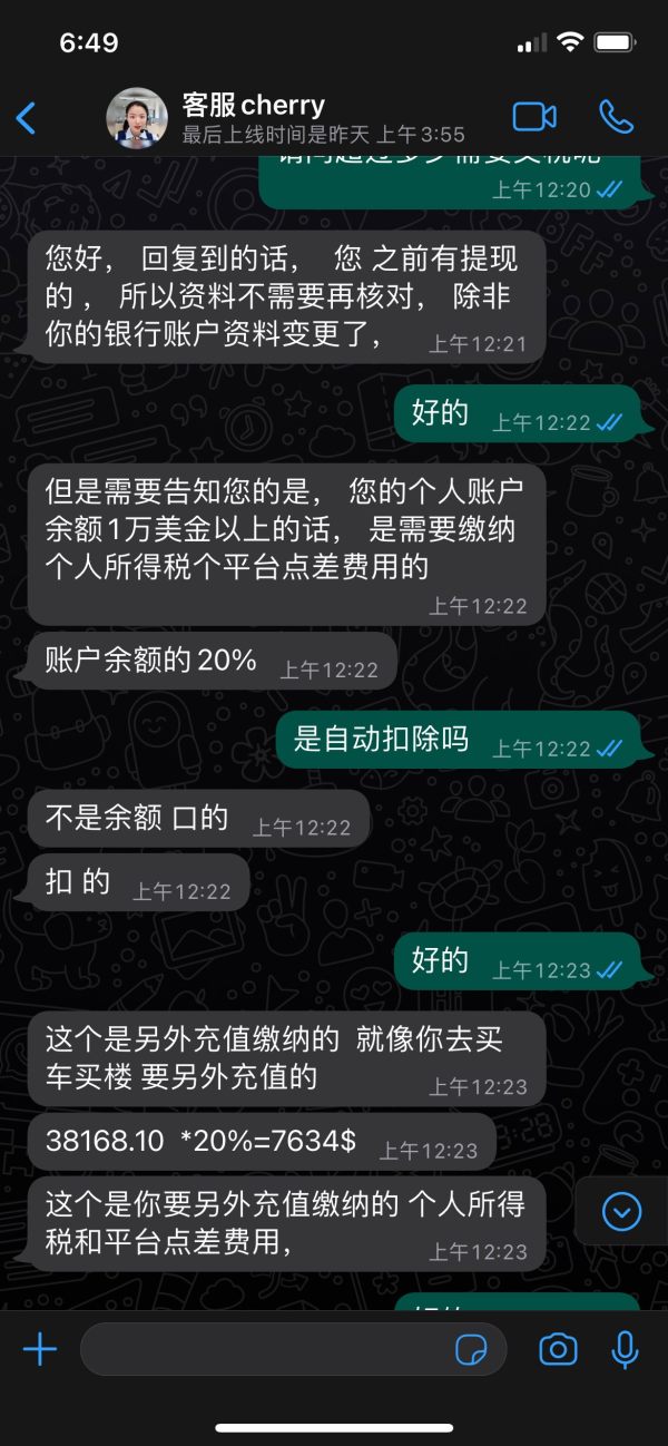 要支付個人所得稅才能提現 這肯定是為了詐騙才叫你多充值 詐騙網站