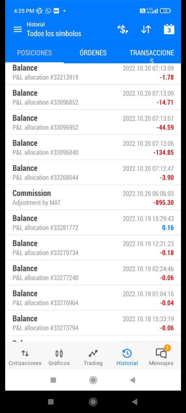 Este broker es un fraude y un ladrón, me robó 895 dólares de mi cuenta, con un concepto, disque ajuste por comisión. cuando reclamé por el retiro arbitrario de los 895 dólares de mi cuenta, me contestaron que hablara con mi gestor y lógico el gestor no tiene acceso a mi cuenta y menos a mí dinero. Son unos ladrones y siguen operando como si nada, para retirar, ponen trabas y dilatan lo más que pueden el retiro. En la imagen se ve claramente la fecha y el retiro por 895 dólares, hecho directamente por el broker. Cualquier información adicional con gusto.