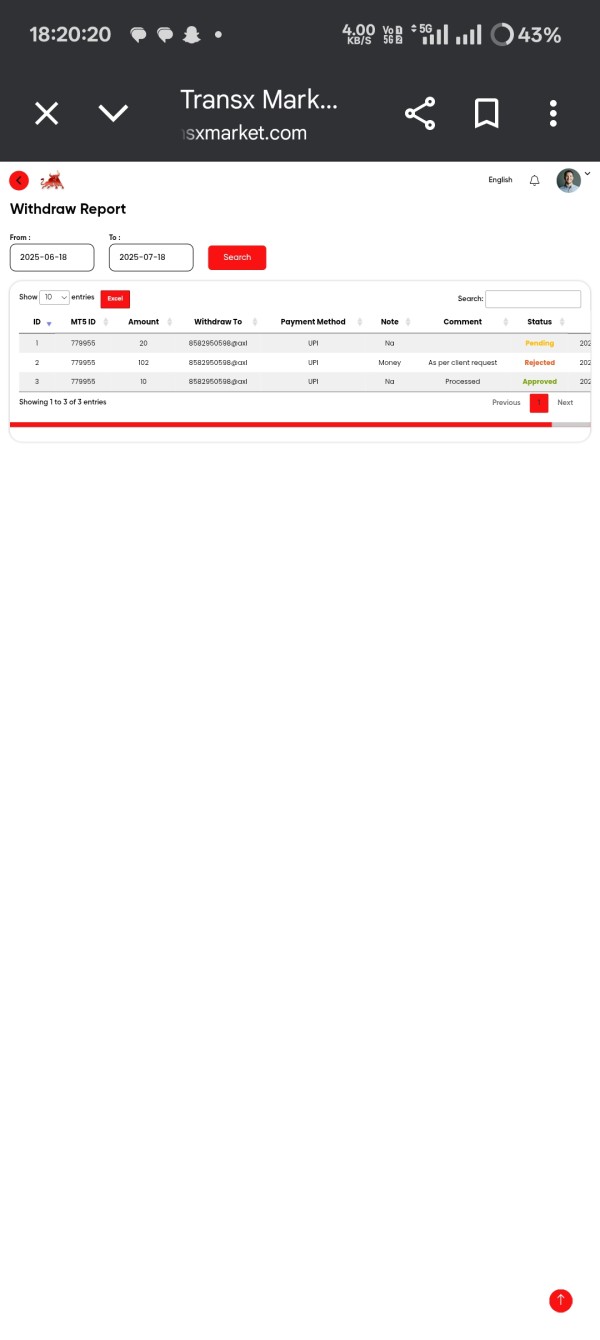 want to warn others about TransX Market (transxmarket.com). This platform is a scam, and I strongly advise everyone not to deposit any money. They promise high returns but block all withdrawal requests once you try to access your funds. The company claims to have an office in Dubai, but everything seems fake and unregulated. There is no proper license, and the support team becomes unresponsive as soon as you ask to withdraw your money. They also force you to deal with so-called "managers" or middlemen for approvals, which is completely unprofessional and suspicious. Many people have already lost their money to this fraudulent platform. Please be careful and do not trust TransX Market. This is not a legitimate trading company. I am also sharing you the screenshot of my trading account and withdraw request as well . No withdrawal were giving now after trying to connect with Support service they have block me . screenshot has been mentioned.