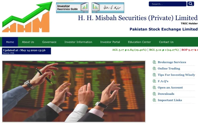 Ikhtisar:H. H. Misbah Securities (Private) Limited didirikan pada Juli 2003, melebelkan dirinya sebagai Pakistan Stock Exchange, namun awalnya berdiri di bisnis Saham sejak 1994.