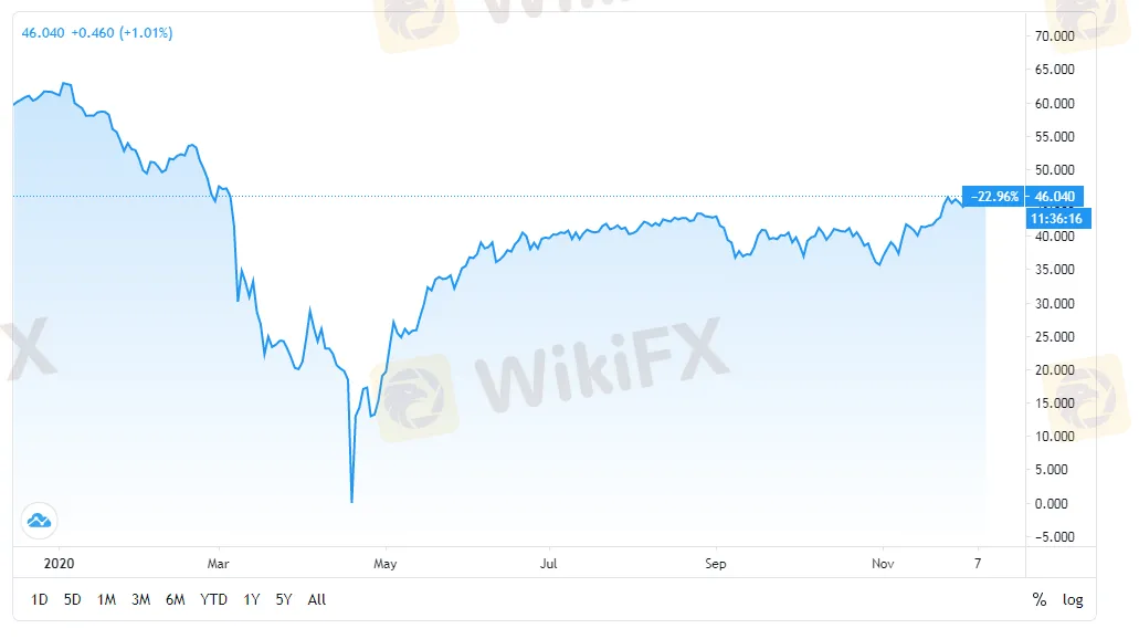 Minyak mentah WTI pernah melonjak ke tertinggi $ 45,92 minggu ini tetapi berhenti sedikit di $ 46,0 dengan konsolidasi sekitar $ 45,47. Harga minyak dapat mendanai tekanan dari ketidakpastian baru-baru ini.