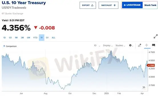 Gejolak pasar baru-baru ini yang dipicu oleh mantan Presiden Donald Trump paling berdampak pada pasar obligasi pemerintah AS. Sebagai tolok ukur kredibilitas kredit AS dan penopang dominasi dolar, stabilitas obligasi sangatlah krusial. Menteri Keuangan AS, Bessent, menegaskan bahwa gejolak ini merupakan bagian dari proses deleveraging, bukan tanda risiko struktural. Imbal hasil obligasi tenor 10 tahun kini turun menjadi 4,356%, dengan level 4,5% dijuluki sebagai "Garis Bessent"—batas psikologis bagi para pengamat yield.