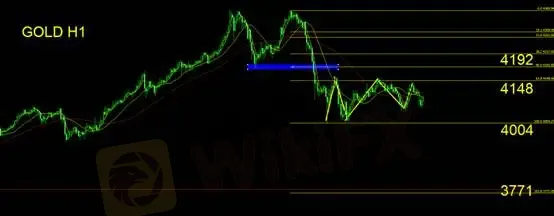Dalam grafik per jam, pola harga menunjukkan formasi M ganda dengan pergerakan konsolidatif di area bahu kanan setelah menembus garis leher. Pada grafik mingguan, candlestick menampilkan pola bearish engulfing, menandakan potensi pembalikan arah. Selama harga belum berhasil menembus resisten 4148, tren emas masih berada dalam pola konsolidasi lemah. Strategi disarankan adalah jual saat harga naik (sell on rally). Penembusan di bawah support 4004 kemungkinan besar akan memicu tren turun lanjutan.