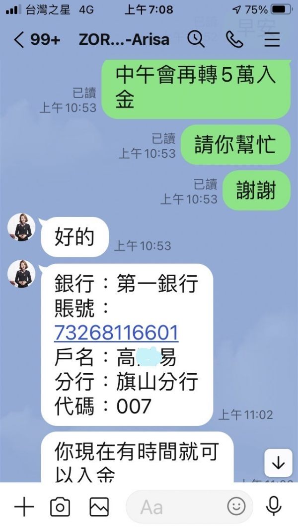 我被詐騙經過:我推斷許多黑平台都是這樣操作,陌生男女加LINE後,與你保持良好的互動(早、晚問候),當取得信任後,再告知有一個獲利很高的外匯保證金投資方式,誘導加入外匯投資(zoro-forex),提供獲利資訊(MT4)。(1)當我表達要入金時,這ZORO Global Limited平台的人員會提供台灣某個銀行的個人帳戶,並不是平台的專用帳戶,這就是被詐騙,把自己帳戶的錢轉到他人的帳戶,當時我提出懷疑,交易所表示,這樣轉帳比較快,如果走專戶會拖好幾天。無意中相信這個說法,後來才驚覺根本沒有專戶。(2)當表明要出金時,平台就利用他人帳戶轉到我的帳戶,當我確認可以出金後,不知不覺前後投入約8~9萬美金,這過程幾次被引導下單BTC,幾秒鐘就被平倉,資金順瞬間空了,大約一個月後,惡夢開始我的銀行帳戶就被列為警示帳戶列管,銀行表示這是詐騙手法。驚覺我的帳戶變成人頭帳戶,讓詐騙集團利用獲利出金導致被列管,到現在我的全部銀行帳戶都被列管無法使用,請各位好朋友一定要多注意,別加入黑平台。(3)可想而知,ZORO Global Limited交易所是為了詐騙成立的殺豬盤,可能利用投資獲利等等手法吸引加入,香港跟台灣或其他各地的詐騙洗錢,平台會員與人頭帳戶互相轉帳,設立許多斷點。導致無法順利追查,當發現自己被詐騙,卻無能為力,自己是被害者,但因為出金變成加害者。ZORO Global 聲稱有申請美國MSB牌照(https://www.fincen.gov/),說回來表示美國MSB沒有真正監管,ZORO Global官網上只有信箱,卻沒有其它任何聯繫方式,這擺明的就是不處理任何會員的問題。我更相信,這個集團一定成立了許多個黑平台,網域名稱 : zoro-forex.com 網頁主機 IP 位址 : 106.3.84.146