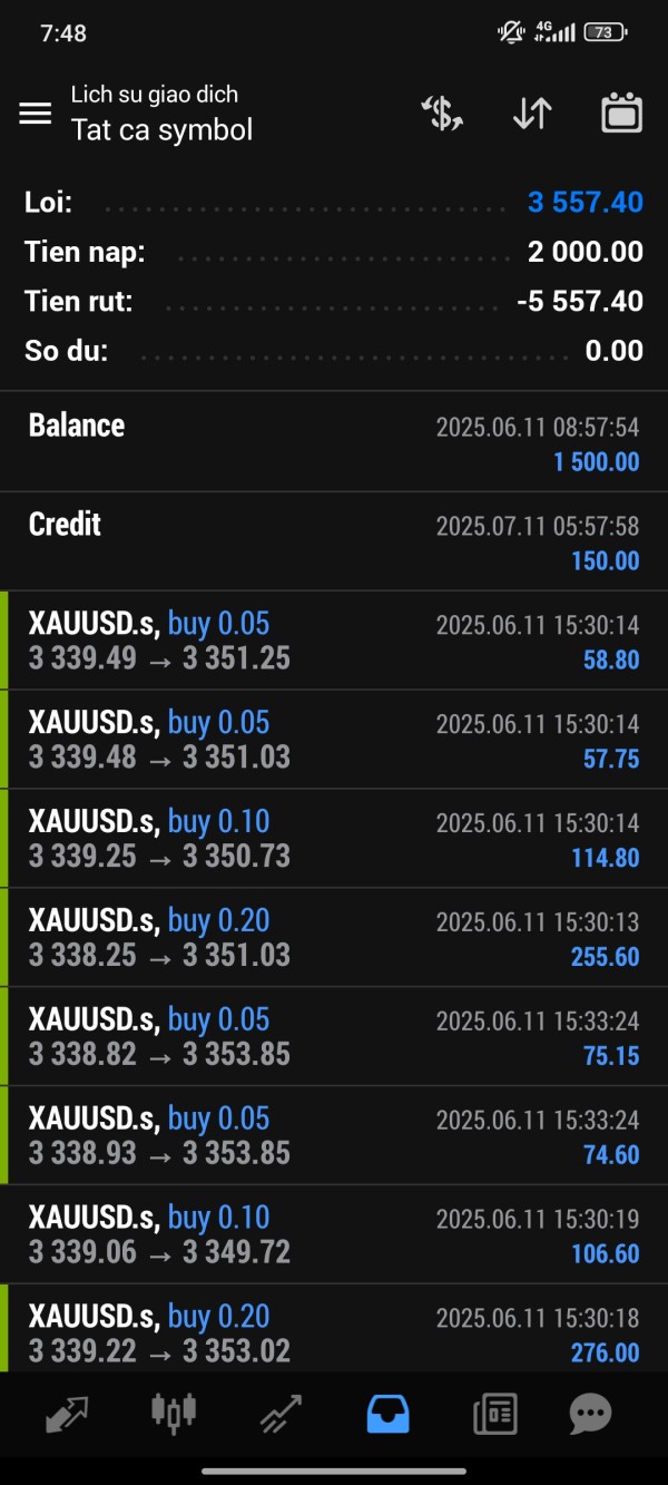 Tôi là Nguyễn Quốc Trường. Mã số . Tôi đến từ Việt Nam. Ngày 11/06/2025 tôi nạp số tiền 1500usd vào tài khoản giao dịch MT4 60034657. Từ ngày 11/06/2025 đến ngày 16/06/2025 tôi giao dịch theo xu hướng tăng giá của XAUUSD, với 23 lệnh giao dịch, khối lượng giao dịch là 2.45lot XAUUSD, đạt tổng lợi nhuận là 3557.4usd. Tôi giao dịch hoàn toàn thủ công, vào lệnh thủ công có cài đặt TP/SL, có trường hợp tôi thao tác đóng lệnh thủ công khi cảm thấy đủ lợi nhuận. Tôi chỉ đơn thuần giao dịch thuận theo xu hướng tăng giá của XAUUSD, không gian lận, không thao túng thị trường, không lạm dụng bonus bởi vì tôi chưa sử dụng đến bonus 10% được cấp. Tuy nhiên Dooprime đã khấu trừ toàn bộ số lợi nhuận 3557.4usd mà không đưa ra được bằng chứng nào. Tôi yêu cầu Dooprime phải chi trả số lợi nhận hợp lệ của tôi. Nếu Dooprime không xử lý, tôi sẽ báo cáo với cơ quan cảnh sát Việt Nam để thực hiện các biện pháp phong toả, điều tra, xử lý các hành vi lừa đảo của Dooprime