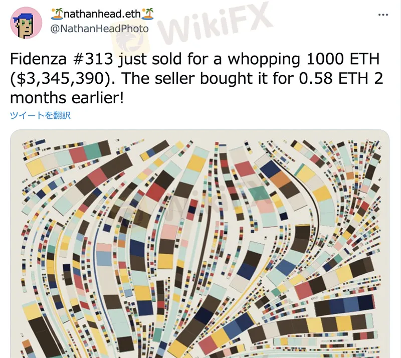 概要:WikiBit今週注目記事:NFTアートのFidenza #313 を335万ドルで販売