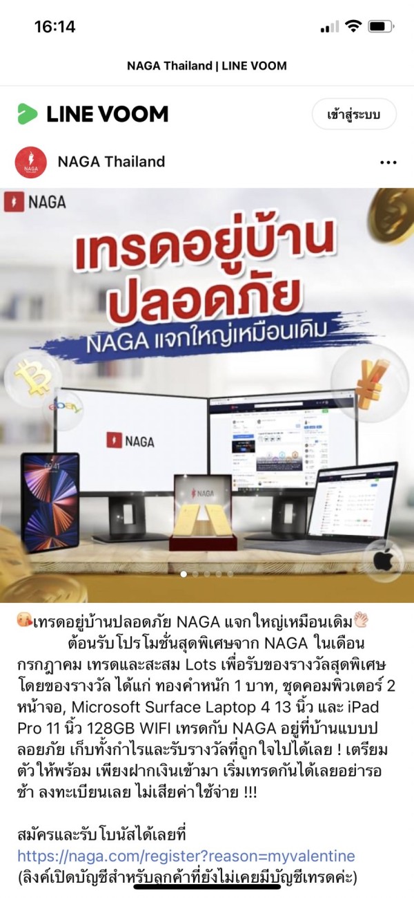 ดิฉันได้เข้าร่วมกิจกรรม เทรดสะสมลอต เดือน มิย. และเดือน กค. ปี2564 ทำทุกอย่างเทรดครบตามเงื่อนไข และทางโบรคเกอร์ประกาศรายชื่อผู้ได้รับของรางวัล ทั้งipad และโน๊ตบุ๊ค ซึ่งก็มีชื่อดิฉันอยู่ เจ้าหน้าที่นากา บอกว่าของรางวัลจะจัดส่งให้ถึงบ้าน ดิฉันรอจนสิ้นเดิอนสิงหาคม ก็ทวงถามของรางวัลจากเจ้าหน้าที่นากา ได้รับคำตอบว่า ของรางวัลอยู่ระหว่างการจัดส่งจากสำนักงานใหญ่ที่เยอรมัน ดิฉันจึงรอต่อไปอีก 2สัปดาห์ เมื่อไม่ได้รับของ ก็มีการทวงถามซ้ำๆ เดือนละหลายครั้ง ที่นี่เจ้าหน้าพูดจาบ่ายเบี่ยง โยนความรับผิดชอบระหว่างสำนักงานที่ไทย กับสำนักงานใหญ่ ขนาดดิฉันส่งอีเมล์ไปหา CEO ที่เยอรมัน เรื่องเงียบเฉย เดือน มค.65 NAGA แจ้งว่ายุติการให้ของรางวัล