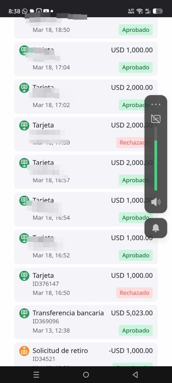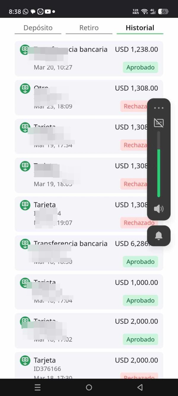 나는 나의 어머니를 대신하여 말합니다. 12월부터 그녀는 매우 유명한 콜롬비아 사업가와 함께 한 광고를 통해 이 회사와 연결되었습니다. 200달러로 시작했지만 현재까지 총 51,331달러를 입금했습니다. 지난주부터 그녀는 자금 전액 인출을 요청했지만, 보험료 명목으로 계속해서 더 많은 돈을 요구받고 있습니다. 오늘 돈이 도착하기로 되어 있었지만, 어제 그녀에게 전화가 와서 돈이 미국에서 억류되어 있으며 이를 해제하려면 추가로 20,000달러를 지불해야 하며, 지불하지 않으면 투자한 돈과 소위 번 돈 모두를 잃게 된다고 말했습니다. 현재 그녀의 계정은 그들이 그녀의 입금을 기다리고 있기 때문에 여전히 활성 상태입니다. 그녀가 한 모든 지불에 대한 증빙 자료를 첨부하여 보냅니다. 도움을 주셔서 감사합니다.
