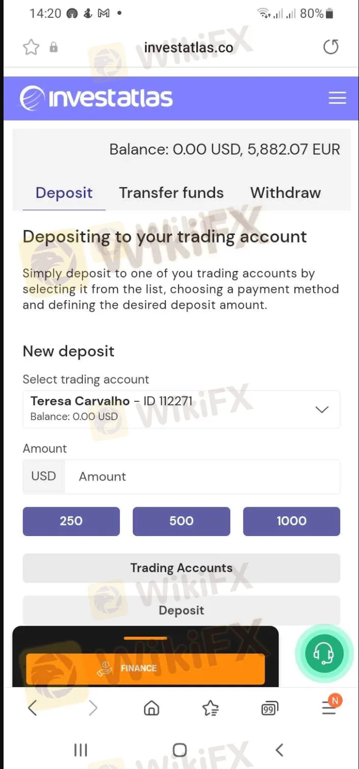 De acordo com as informações da coluna de exposição no site oficial do WikiFX, em 21 de junho de 2023, um trader forex de Portugal reclamou de um caso de fraude cambial. Segundo informações fornecidas por ele, ele investiu um total de 3.850 euros no site da corretora Invest Atlas, mas na data de saque o investidor não conseguiu sacar e todos os canais de contato também foram bloqueadas pela corretora.