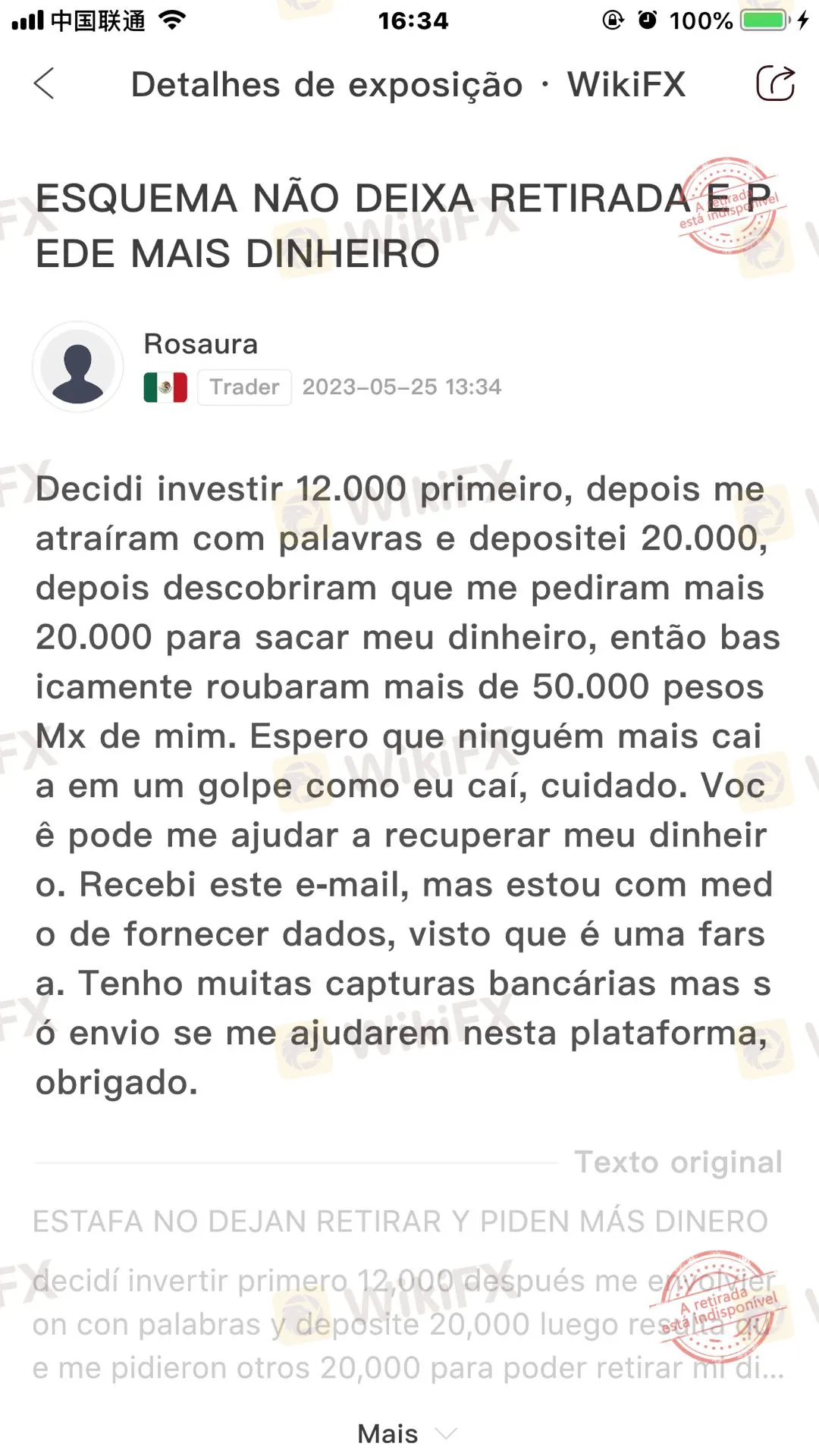 Nos últimos 3 meses, a WikiFX recebeu um total de 25 reclamações contra a corretora, expondo os problemas da corretora, como incapacidade de sacar fundos da conta e fraude! As vítimas estão localizadas no México, Colômbia, Peru e outras partes do mundo.