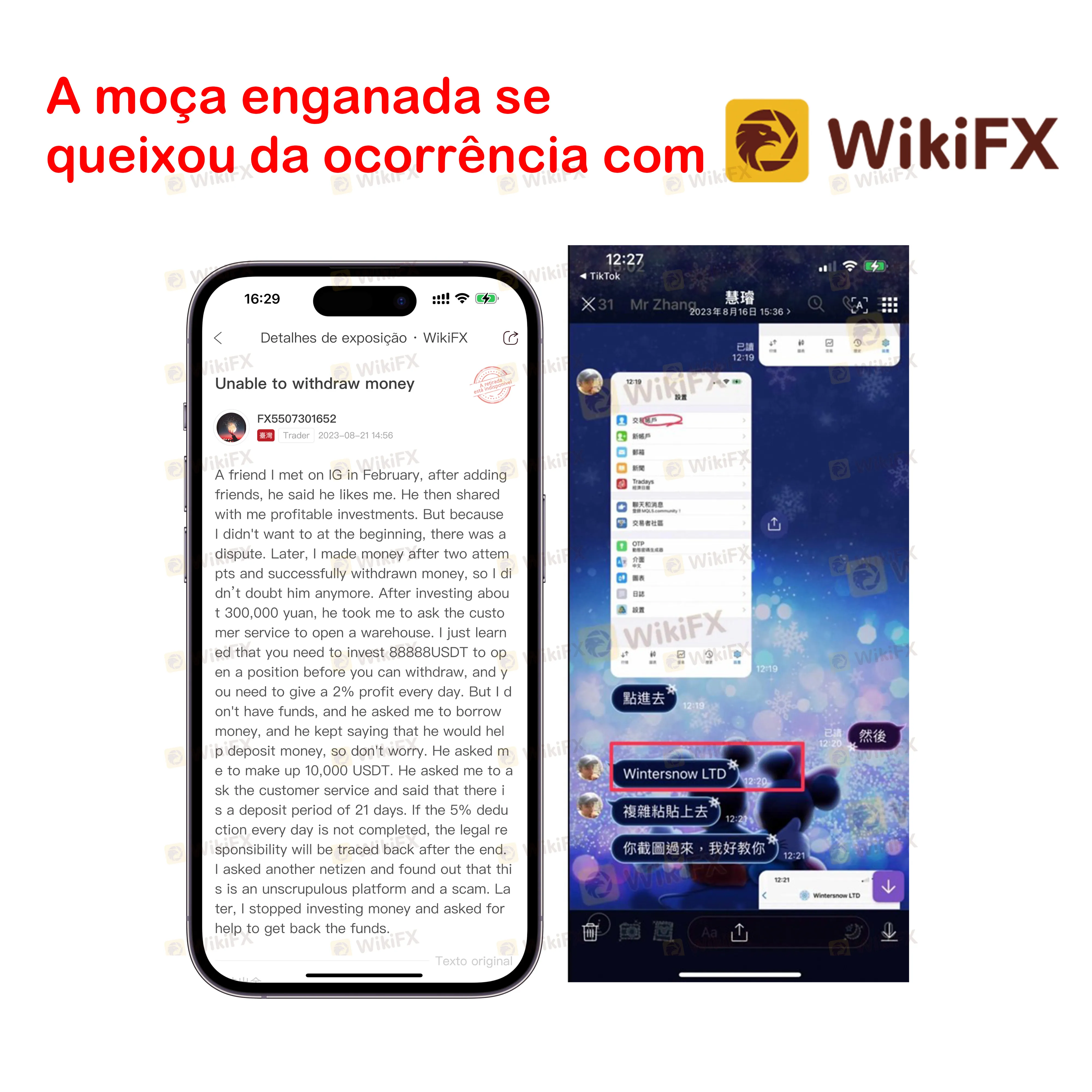 Recentemente, um investidor de Taiwan, China, reclamou à WikiFX e expôs a plataforma Winter, afirmando que não conseguia fazer saques, caracterizando-a como uma plataforma desonesta e uma fraude.