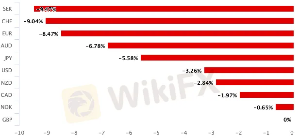 (На рисунке показана сравнительная таблица эффективности каждой валюты, фунт - худшая валюта в 2020 году.)