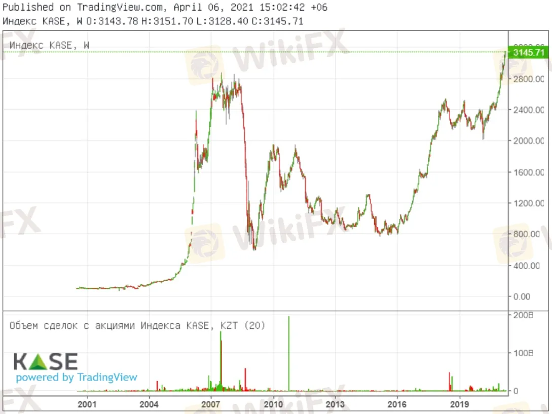 Абстракт:Индекс казахстанской фондовой биржи KASE Index во вторник штурмует очередное исторически рекордное значение – 3145 пунктов, прибавляя в течение дня почти 2%, а с начала года увеличившись на 17,5%.