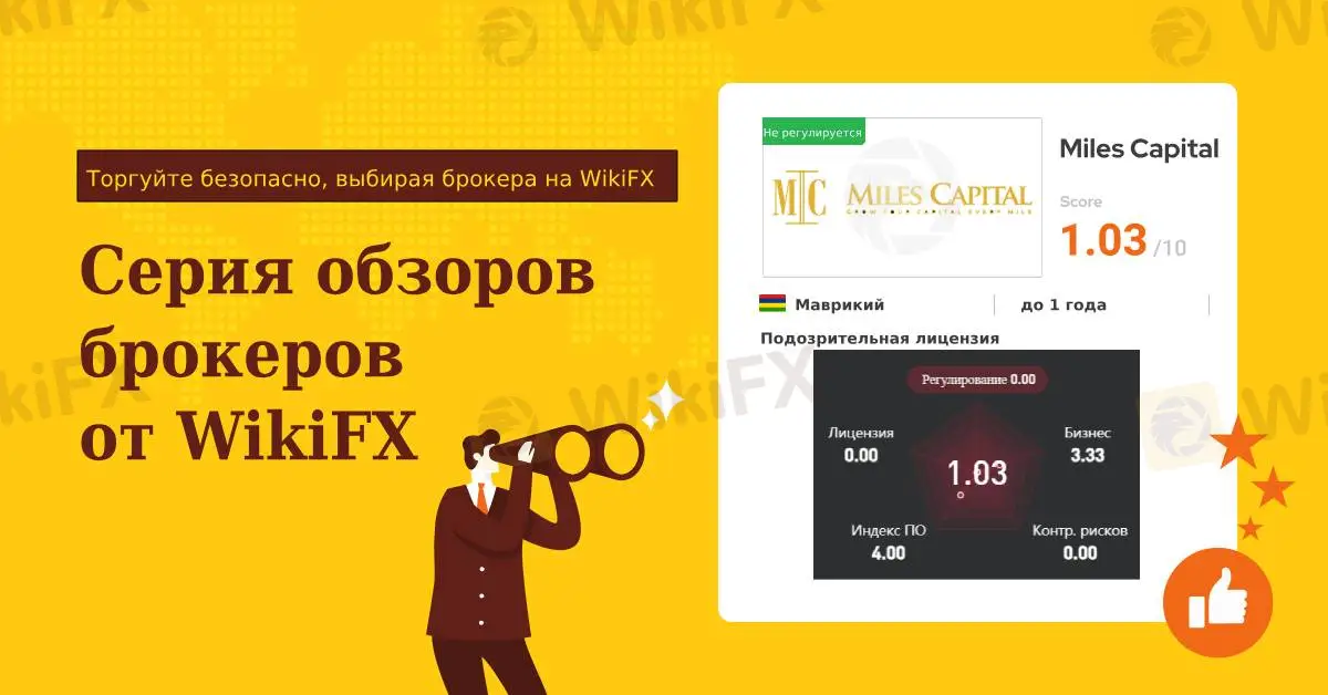 Miles Capital не является официально лицензированным форекс-брокером, и, согласно исследованию WikiFX, лицензия этой фирмы недействительна. Поэтому WikiFX присвоил этому брокеру низкий рейтинг 1,03/10.