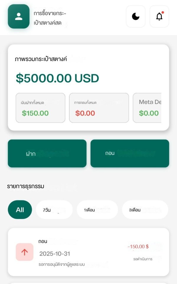 ฉันได้ทำการสั่งถอนเงินตั้งแต่เวลา 10:26 น. ของวันที่ 16 ตุลาคม 2025 แต่ไม่สามารถถอนเงินได้ และระบบยังคงแสดงสถานะ 'รอดำเนินการ' อยู่ตลอด เมื่อฉันสอบถามฝ่ายสนับสนุนว่าต้องรอนานเท่าไหร่ ก็ไม่ได้รับคำตอบใดๆ