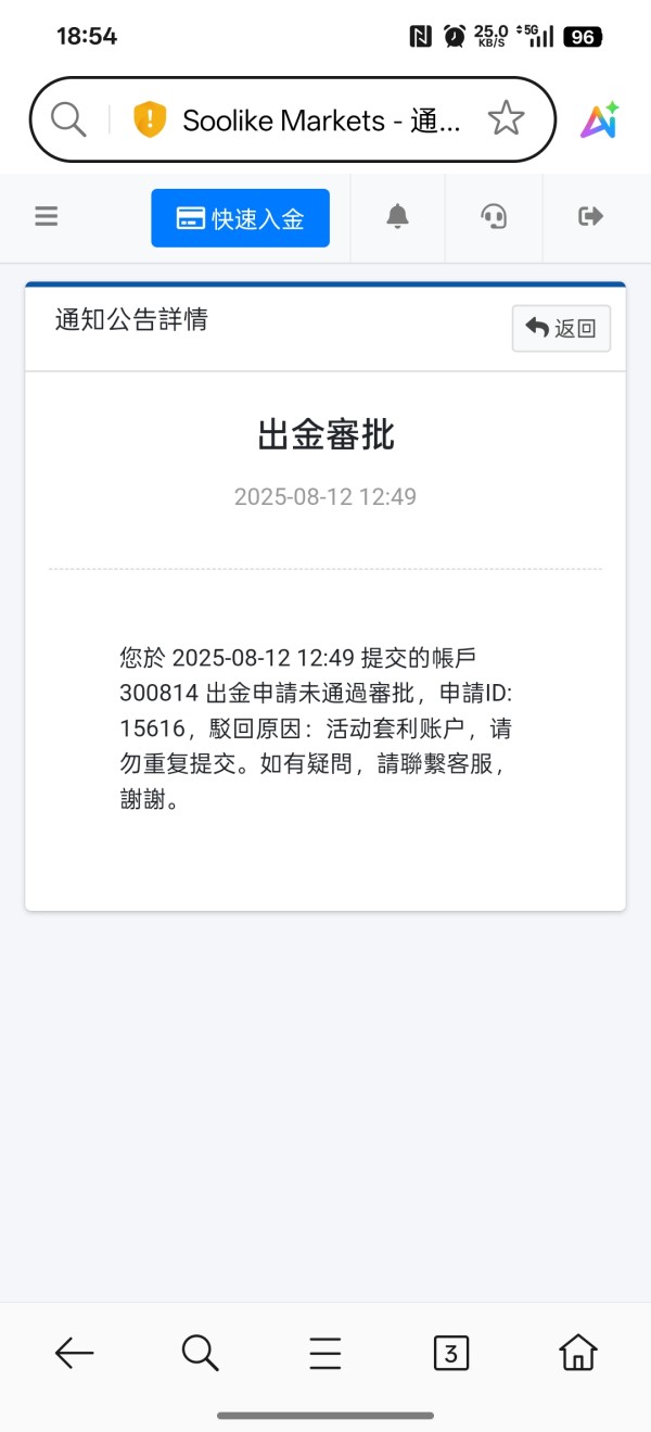 โบรกเกอร์ SOOLIKE ไม่สามารถถอนเงินได้ แลกเปลี่ยนบัญชีลูกค้าโดยพลการ