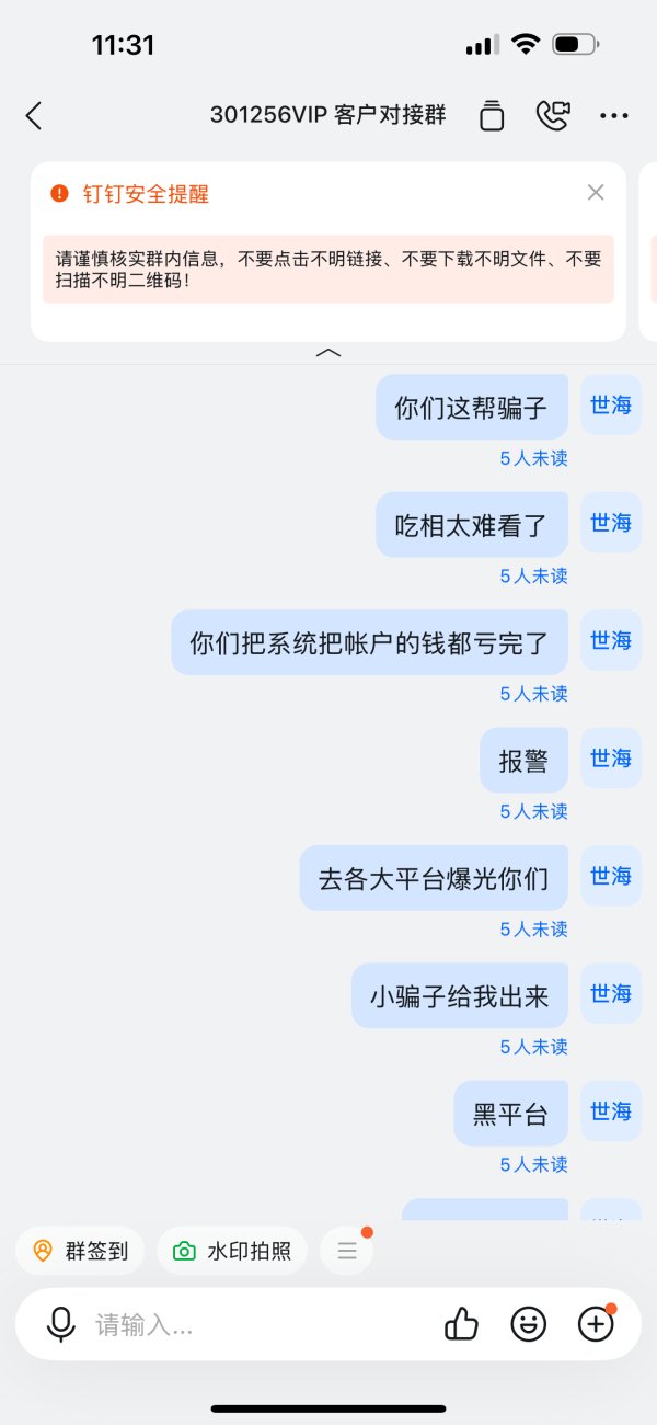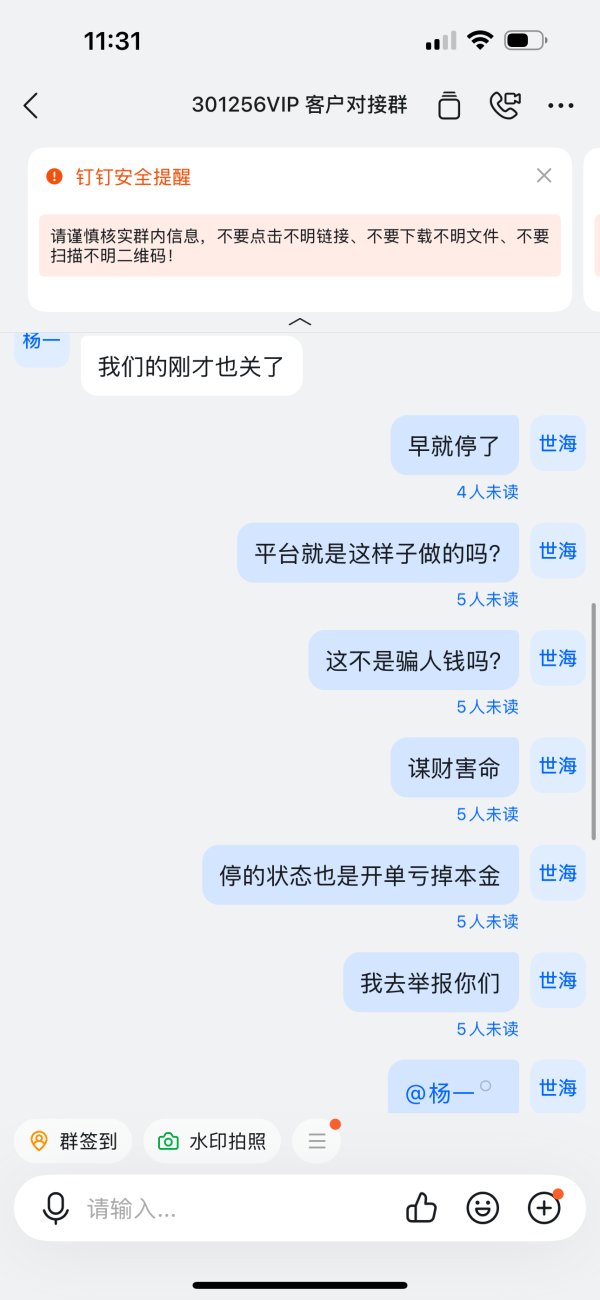 2025年9月9号晚上10:30左右,我有10分钟左哼无法登陆MT5,等我能登陆的时候,发现帐户已产生数笔大额交易,本金几乎亏完?平台在后台开单,导致我本金大额亏损。现在在钉钉群,几个工作人员也不理。就这样一个黑平台。直接把客户的钱亏完。