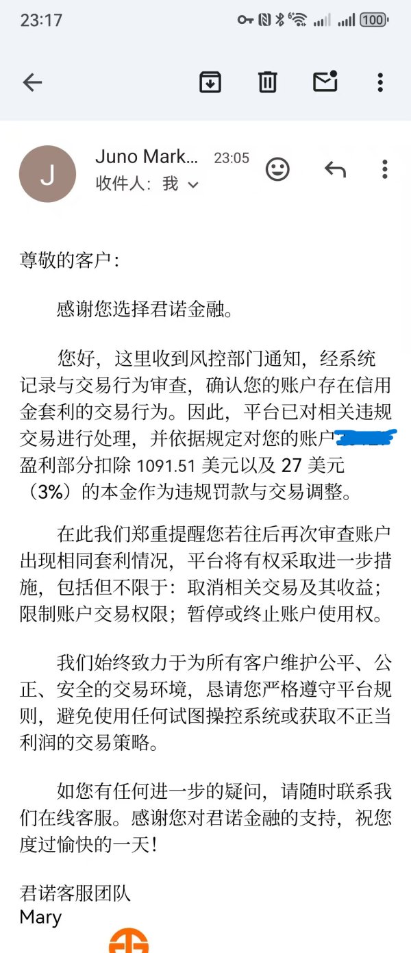 我第一次在这个平台注册账号,然后给我盈利扣除了,说我存在信用金套利的交易行为,不能理解我哪里违规了,要求返还我盈利部分