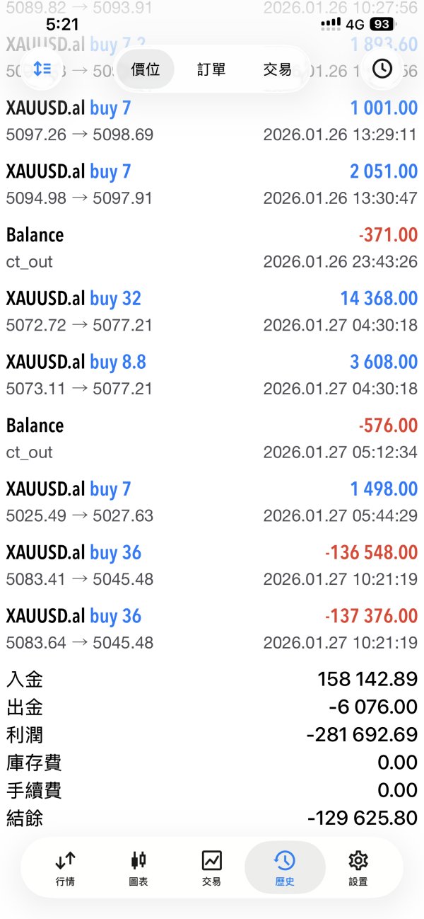 前後一共入500萬,但下單時點一下莫名2單跑出來,瞬間詭異的下滑40美元,導致爆倉,還出現負數,查證其他家平台在同一時間點都並無有此價格出現,價格嚴重脫離正常範圍,寫信要求返還,但查無此地址。