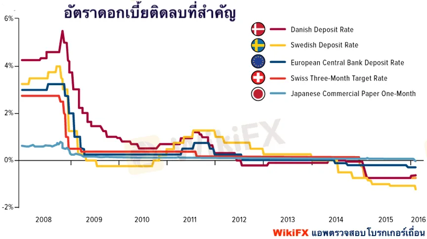 ในเดือนกรกฎาคม 2552 ธนาคารกลางของสวีเดนประกาศว่าจะลดอัตราดอกเบี้ยเงินฝากเป็น -0.25% และจะไม่กลับมาเป็น 0 อีกจนกระทั่งสิ้นสุดปี 2562 ถึงอย่างไรก็ตาม ณ ปีพ.ศ. 2561 อัตราการขยายตัวทางเศรษฐกิจของประเทศสวีเดนนั้นไม่เกิน 0.8%