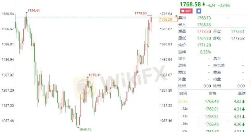 วันที่ 4 กรกฎาคม WikiFX News ได้เผยว่า ในช่วงครึ่งปีแรกของปีนี้ ราคาทองคำระหว่างประเทศจะเพิ่มขึ้นอีกเกือบ 17% และได้ทำสถิติใหม่สูงสุดอยู่ที่ 1,797.53 เหรียญสหรัฐต่ออนซ์ ตลอด 8 ปีที่ผ่านมานับตั้งแต่วันที่ 8 ตุลาคม 2555 อัตราการเพิ่มขึ้นจากของปีที่แล้วมีเพียง 18%