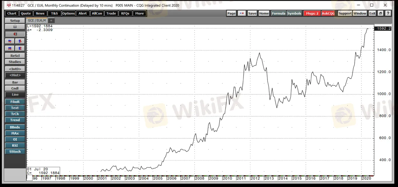 ราคาทองคำสามารถสร้างจุดสูงสุดใหม่ได้อีกครั้งเมื่อสัปดาห์ที่แล้วหลังจากราคาซื้อขายทองคำล่วงหน้าในตลาด COMEX ที่จะส่งมอบกันในเดือนสิงหาคมขึ้นไปสร้างจุดสูงสุดเอาไว้ที่ $1,829.80 จากมุมมองการวิเคราะห์ทางเทคนิคแล้วมีโอกาสที่ราคาจะสามารถขึ้นไปถึง $1,920.70 ต่อออนซ์ได้เลยทีเดียว จุดสูงสุดของสัปดาห์ที่แล้วอยู่ห่างจากจุดสูงสุดของราคาทองคำในรอบ 9 ปีเพียง $100 เท่านั้น แม้แต่ในขณะที่กำลังเขียนบทความนี้ราคาทองคำสปอตก็ยังวิ่งอยู่บริเวณ $1,803.75