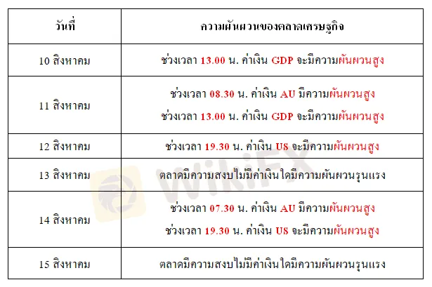 ปฏิทินทางการเงินประจำวันที่ 10 –15 สิงหาคม 2563