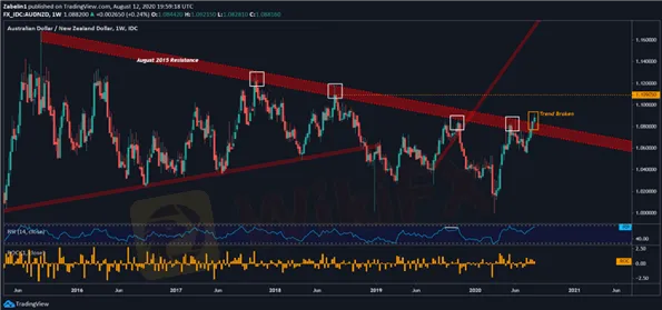 (ภาพนี้แสดงแนวโน้มของ AUD / NZD)