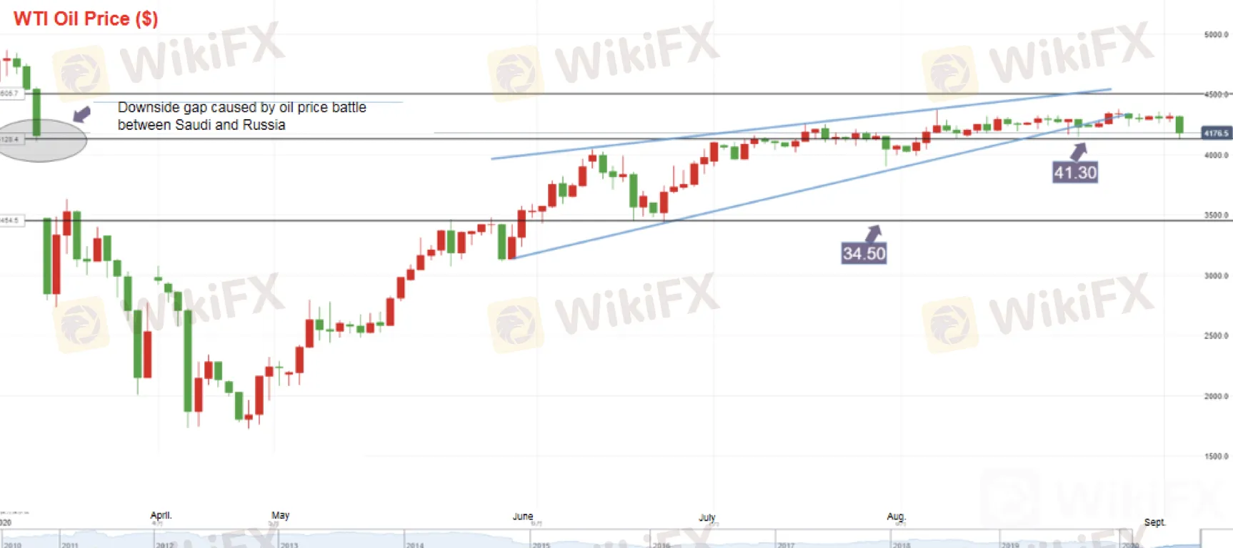 บทคัดย่อ:WikiFX News ในวันที่ 3 ก.ย. เมื่อวันพุธที่ผ่านมาน้ำมันดิบ WTI ลดลงอย่างรวดเร็วจากระดับสูงสุด 43.20 ดอลลาร์สู่ระดับต่ำสุดระหว่างวันที่ 41.23 ดอลลาร์ซึ่งเป็นการลดลงมากที่สุดในรอบ 3 เดือน ราคาน้ำมันในชั่วข้ามคืนลดลงเล็กน้อยต่ำกว่าแนวรับสำคัญที่ 41.30 ดอลลาร์จากนั้นดีดตัวขึ้นและขณะนี้ยังคงอยู่เหนือ 41.30 ดอลลาร์