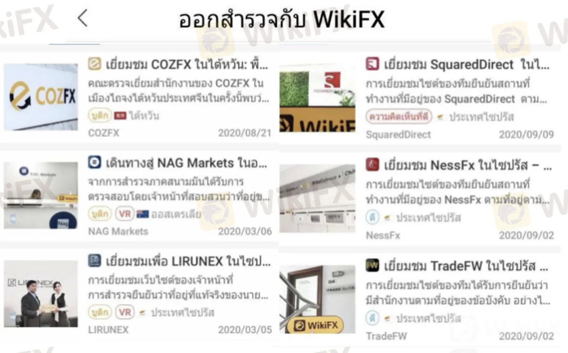 บนแอปพลิเคชัน WikiFX มีฟังก์ชัน “สำรวจภาคสนาม” ของสำนักงานโบรกเกรอร์จากทั่วโลก เพื่อให้เทรดเดอร์รู้ถึงสักงานของโบรกเกอร์มีภาพลักษณ์อย่างไร หรือโบรกเกอร์มีสำนักงานตามที่กล่าวอ้างหรือเปล่า